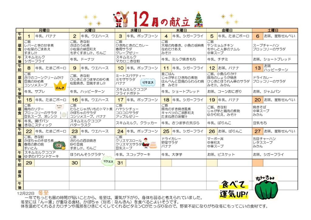 12月の給食献立です。